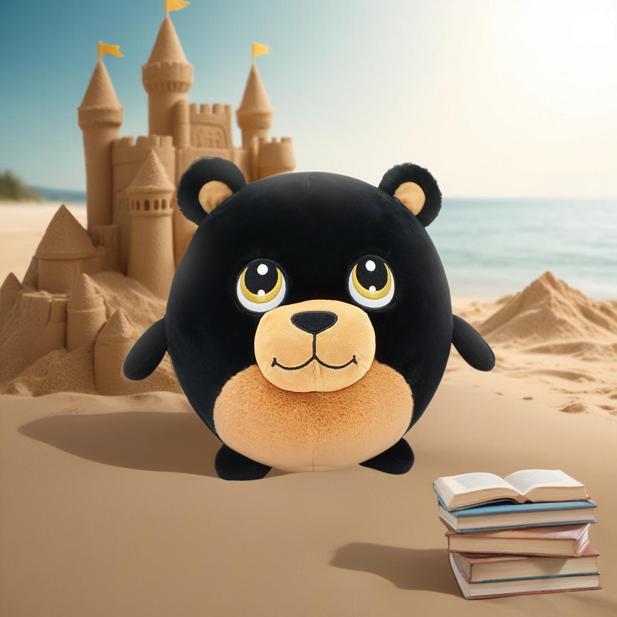 Finnian the black bear is Olanoah’s gentle bookworm, happiest when reading on the beach with the sound of waves in the background. When he’s not lost in a story, he’s crafting intricate sandcastles. His favorite part of the day is when Peony brings him a bouquet of daisies, brightening both his castle and his heart.Â