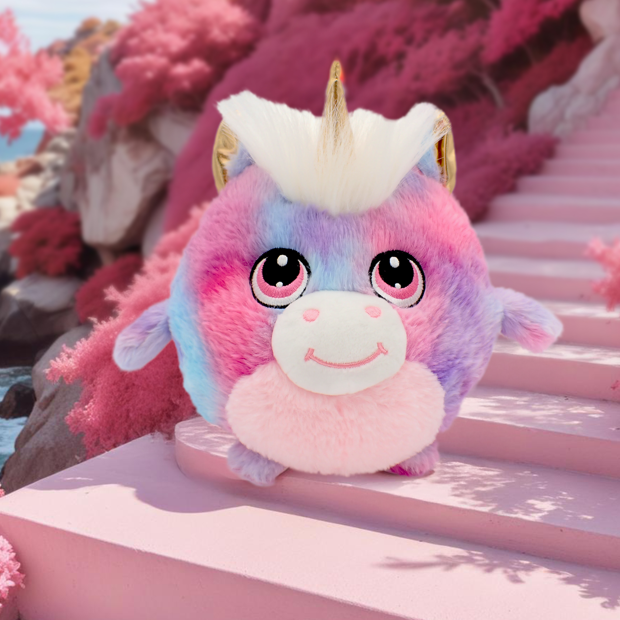 Meadow the unicorn is Olanoah’s fearless water explorer, always chasing her next big splash. She loves cliff diving into the sparkling ocean, soaring through the air before plunging below. Afterward, she enjoys a lively game of hide-and-seek with her bestie, Neo the octopus. To wind down, Meadow loves a blue raspberry snow cone while watching the sunset over the waves.