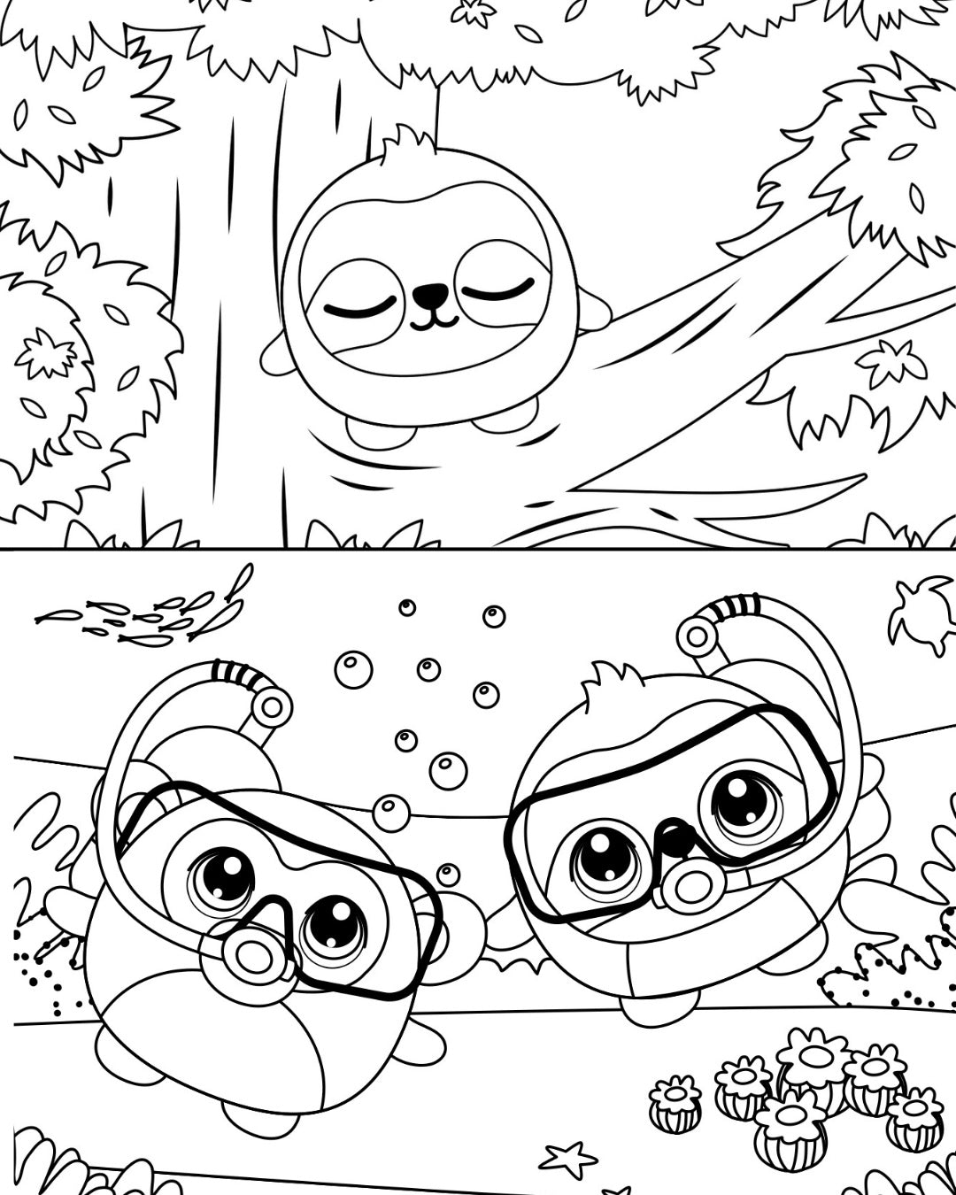 Mikow the sloth is Olanoah’s laid-back dreamer, happiest napping in treetops or gliding through the ocean on a slow, peaceful scuba dive with his best friend, Ayoppy. He finds peace among turtles, his kindred spirits in slow living. Whether drifting through reefs or dozing in the shade, Mikow’s calm nature reminds everyone to savor the moment.